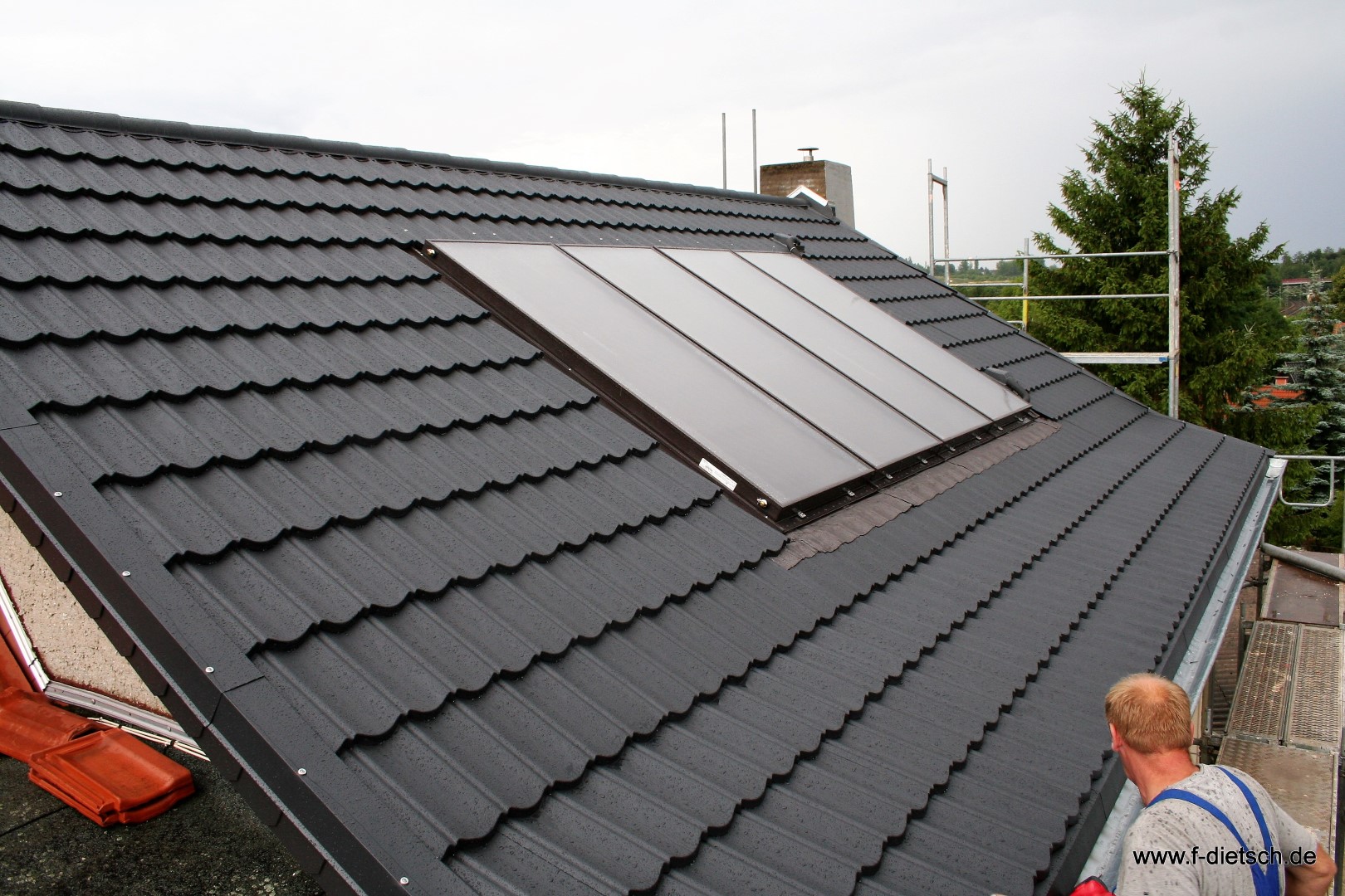 Für den immer wichtiger werdenden Einsatz erneuerbarer Energien bieten wir die Montage von Photovoltaik Elementen zur Stromerzeugung als auch Solarthermie zur Wamwasserbereitung an. Diese können wir optisch ansprechend in die Dachfläche integrieren.